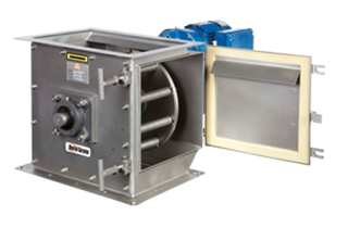 These revolving models provide speedy automatic removal of unwanted iron from bulk materials that tend to stick. Eriez Rota-Grates have been specially designed to remove both large pieces of unwanted iron as well as minute ferrous particles from material flows that tend to clog and bridge when passed through small openings. This dual-action unit rotates several powerful magnetic tubes through the material. The magnetic action attracts and holds the unwanted iron, and the rotary action prevents the material flow from packing and plugging the processing line.