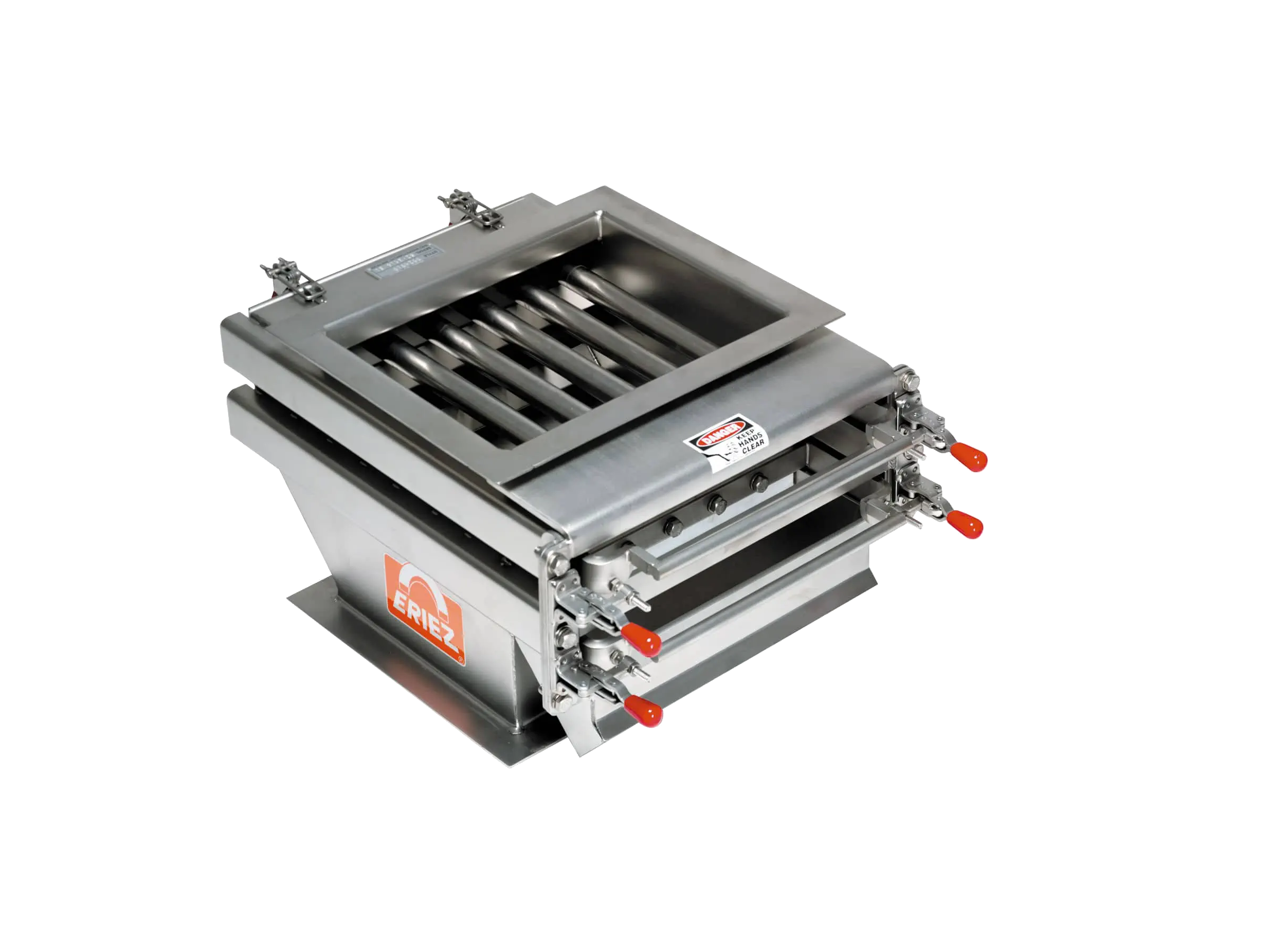 Powerful, permanent magnetic protection against fine and tramp iron contamination. Designed for simple installation in steep-sloped hoppers, odd and irregular shaped hoppers, floor openings, vertical closed chutes, and ducts.